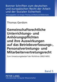 Gemeinschaftsrechtliche Unterrichtungs- und Anhörungspflichten und ihre Auswirkungen auf das Betriebsverfassungs-, Personalvertretungs- und Mitarbeitervertretungsrecht – zum Umsetzungsbedarf der Richtlinie 2002/14/EG
