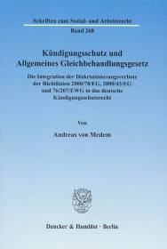 Kündigungsschutz und Allgemeines Gleichbehandlungsgesetz. – Die Integration der Diskriminierungsverbote der Richtlinien 2000/78/EG, 2000/43/EG und 76/207/EWG in das deutsche Kündigungsschutzrecht.