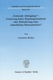 "Nationale Alleingänge" - Förderung hoher Regelungsstandards oder Behinderung eines einheitlichen Binnenmarktes? – Eine Analyse der geänderten Voraussetzungen der Rechtsangleichung seit Einführung des Amsterdamer Vertrages unter besonderer Berücksichtigung des Umwelt- und Verbraucherschutzes.